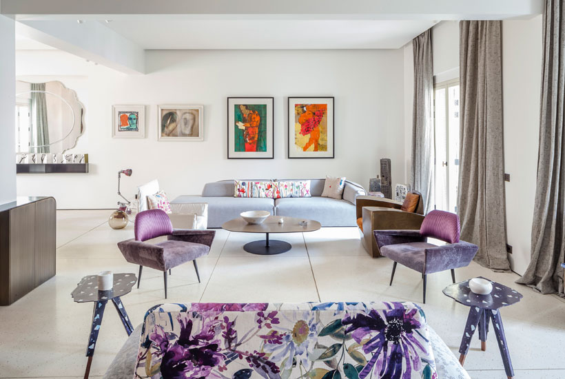 A spacious flat in the heart of West Beirut in an attractive vintage 1950’s building. The flat was refurbished to a very high specification, while keeping it’s original features. The furnishing brief was to create a comfortable and stylish home for the client, an avid reader and writer but equally with ample spaces for entertaining and dinner parties.