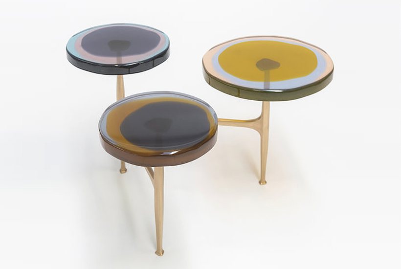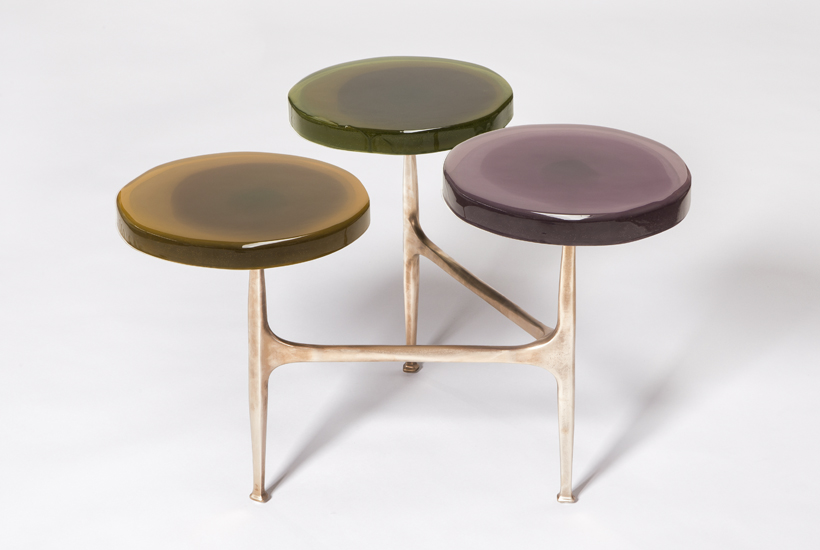 This innovative coffee table is formed of hand cast resin table tops, held together by an elegant cast bronze base. Fusing together different coloured resins using a special moulding technique, the Agatha Table makes an eclectic addition to any contemporary living space. This table is handcrafted in Como, Italy and each piece is unique.