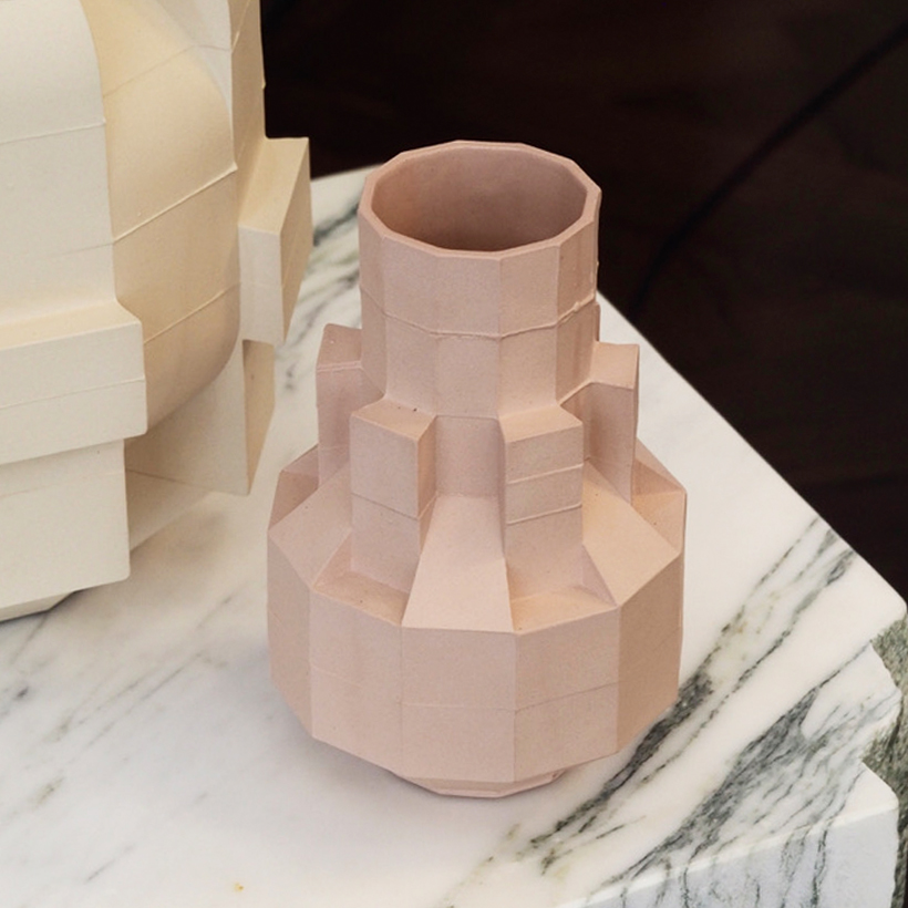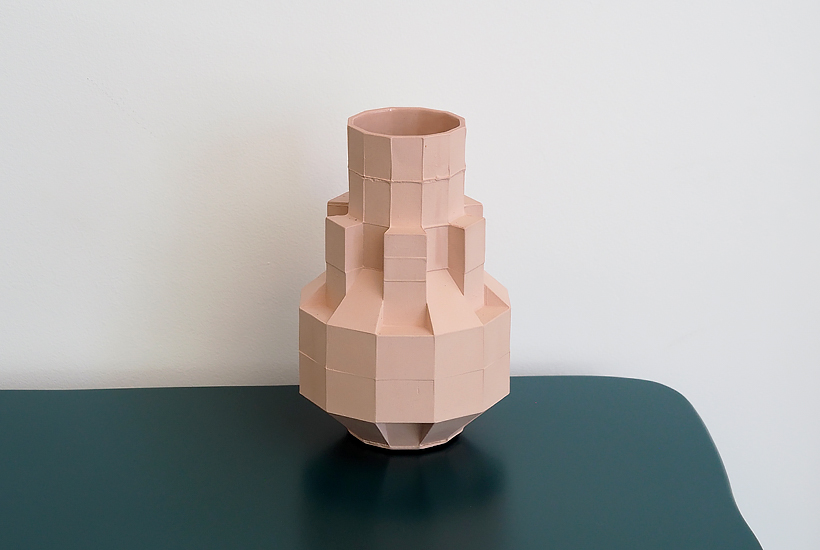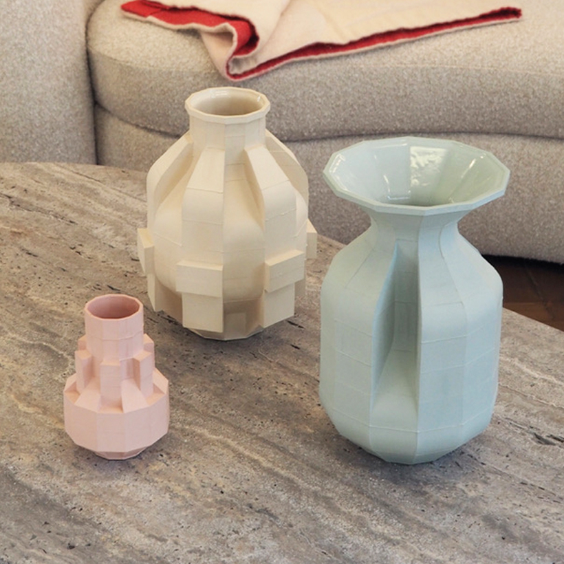 The 'Block Vase' series offer a unique aesthetic by building and layering square moulds into intuitive, sculptural forms. The minimal form and delicate ceramic work enhance an understated elegance that adds a charming warmth to any interior space.