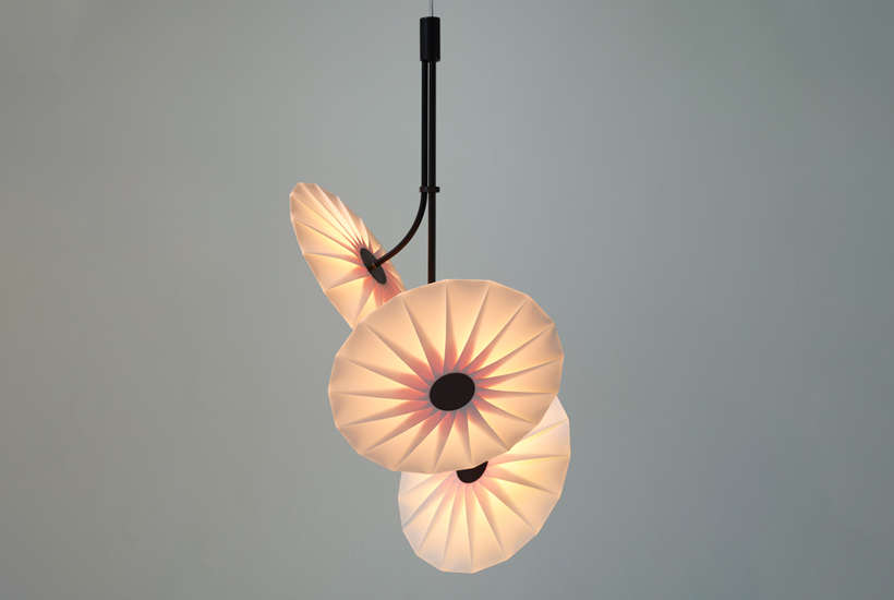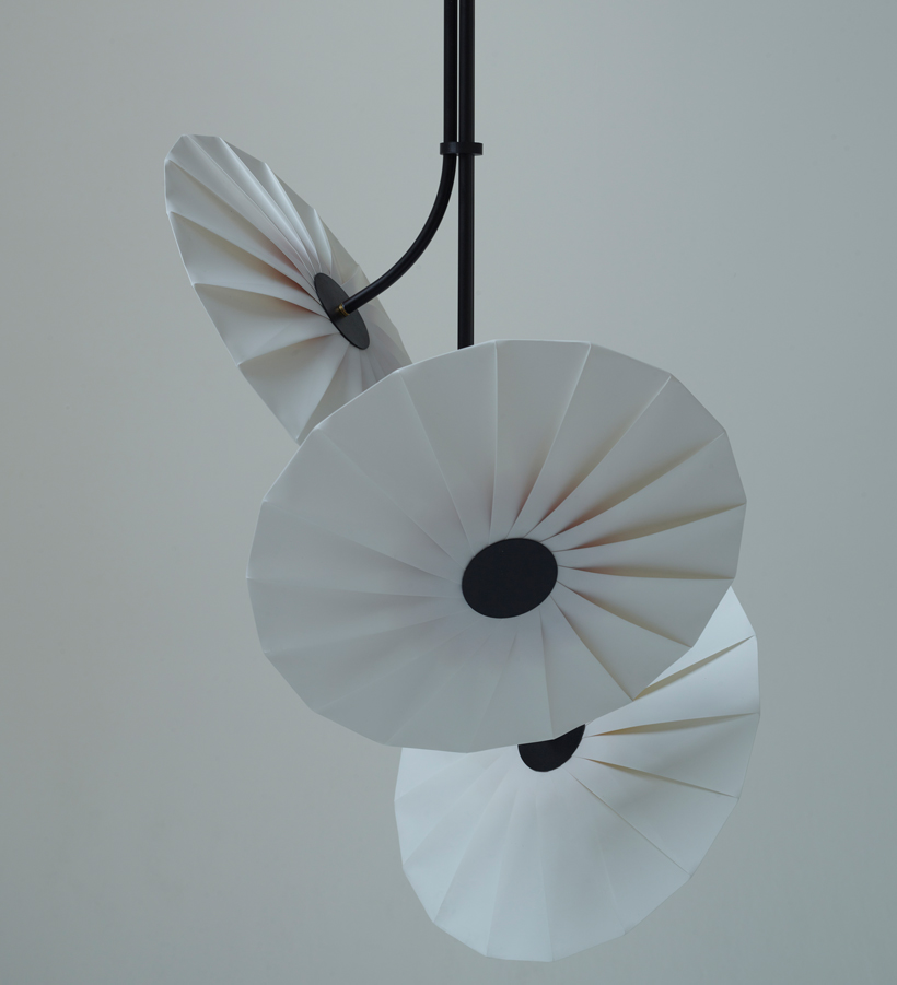 Bloom is an evolving collection of origami lights that draw inspiration from the delicate beauty of spring blossoms. Crafted from paper, each piece is not only lightweight but also entirely recyclable. Meticulously pleated, the warm embrace of illumination breathes life into these crafted shades, revealing a captivatingly layered gradient of colours. The play of light and shadow dances upon each pleat, evoking a sense of wonder and tranquility reminiscent of a blossoming garden in full bloom.