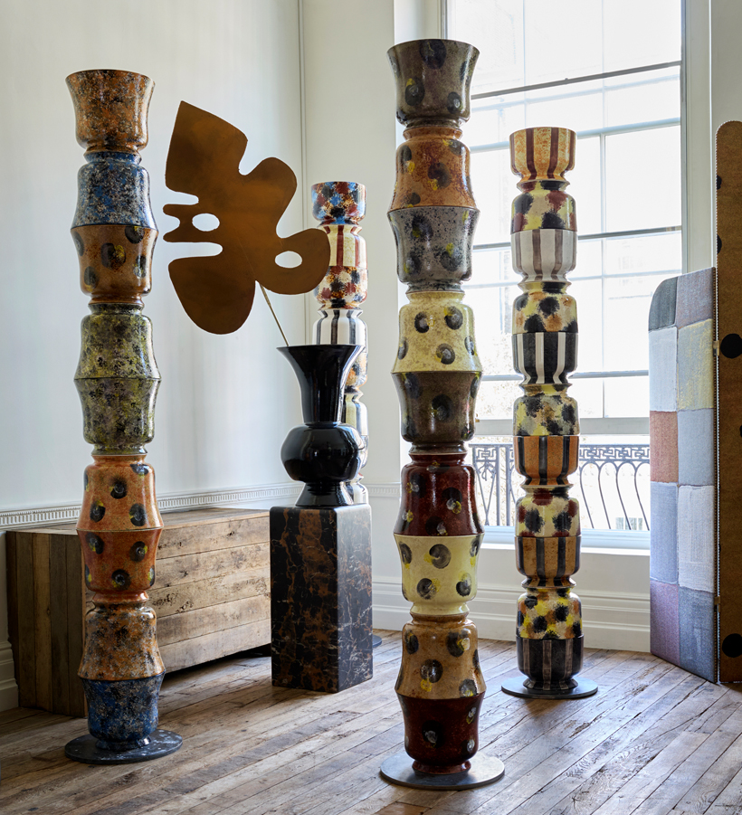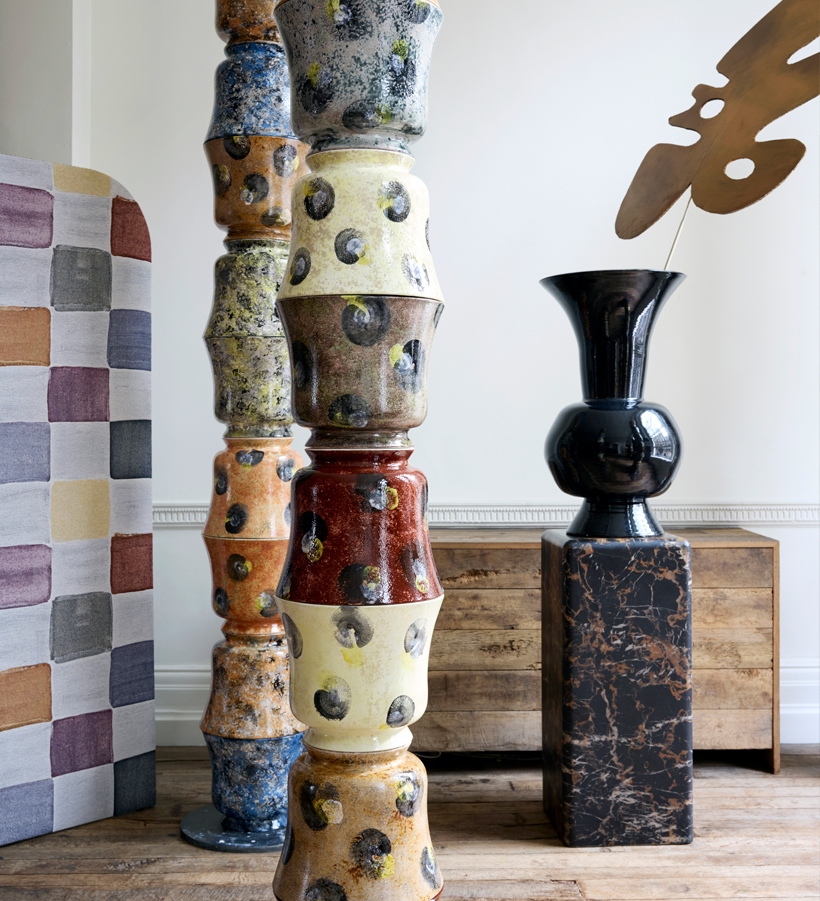 The Ceramic Columns, complex to make and limited in number are exceptional and unique. By working with a hand thrower in Stoke-on-Trent, the makers have pushed the bounds of the thrown pot. The sections are left to dry for 6 weeks and after first firing, Thompson works his magic in hand decorating each vase using his exquisite colour palette. Each piece is unique and each vessel a testament to the beauty of the industrial craft that resides in Stoke-on-Trent, five generations later.