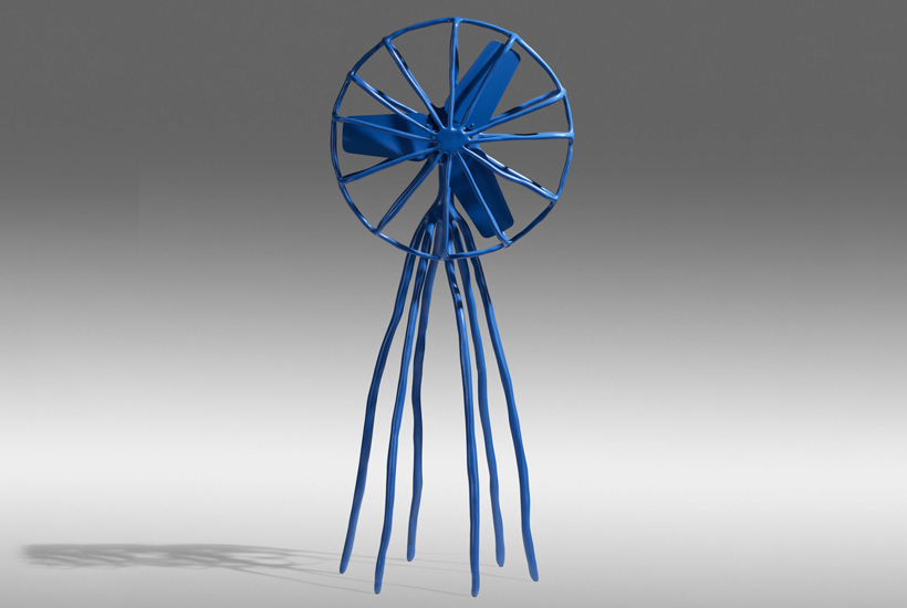 A colourful and playful fan with a deceiving fragile appearance. The structure conceals a thin metal skeleton on top of which industrial clay has been applied by hand. This technique of modelling originally employed in rendering the human form, gives the fan a fantastic sculptural quality.