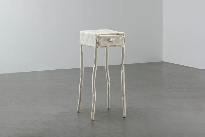 A colourful and playful table with a deceiving fragile appearance. The idiosyncratic childishness of this collection is created through individual hand modelling of industrial clay around metal structures. The vibrant colours, texture and irregularity of form unique to each piece give the tables a naïve and spontaneous finish, with the long legs adding an element of humour to their functionality.