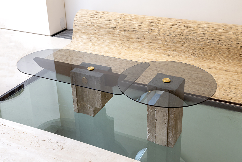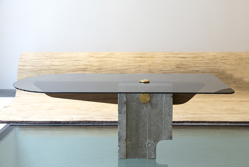 These tables are part of a collection of furniture based on the work of Uruguayan modernist architect Julio Vilamajó Echaniz. Drawing inspiration from a detail on the facade of Vilamajó’s 1953 Faculty of Engineering at Montevideo’s University the designers created a family of two tables, made from concrete, tempered glass and bronze. The tables are a perfect balance of strong and simple form.