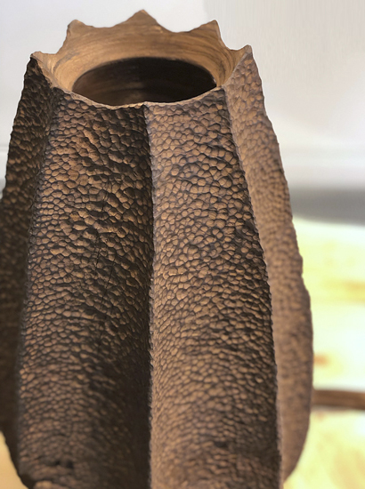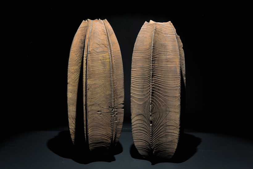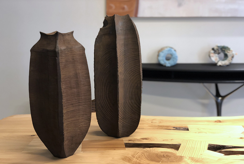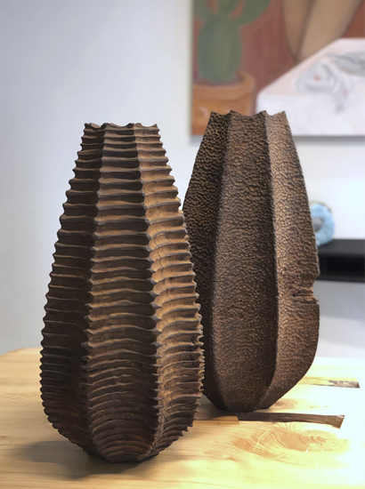 Ctenophora literally means “comb carrier” and it refers to some archaic organisms, closely related to jellyfish that are found in the water column. The artist’s work is inspired by simple life forms recurrent in nature. The way of sculpting and finishing the vessels aims to induce curiosity and change the perception of wood to lean towards metal, rust or stone.
