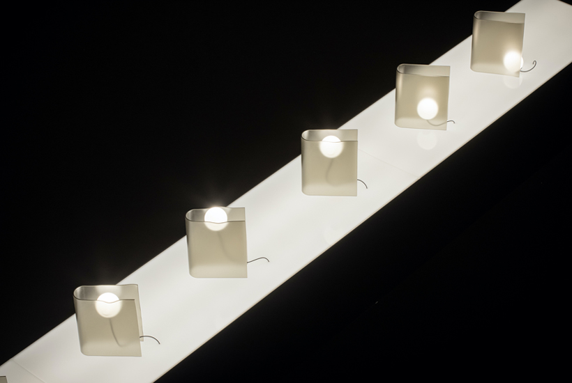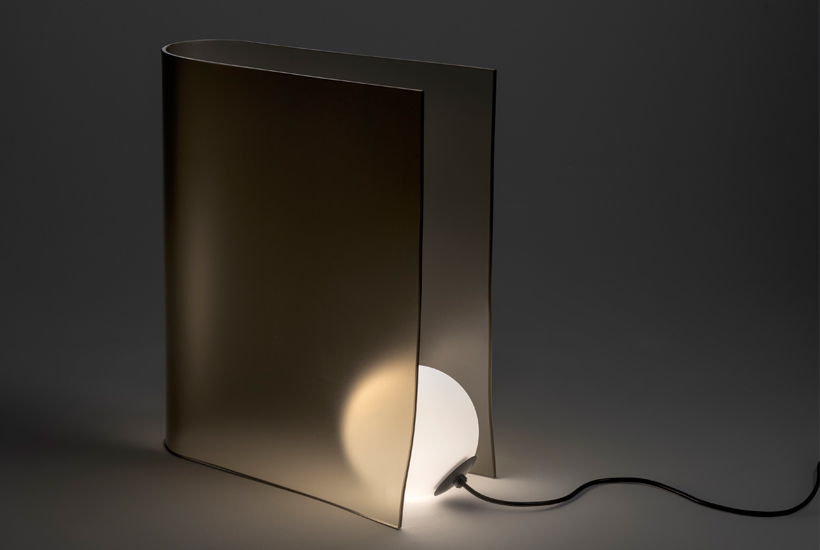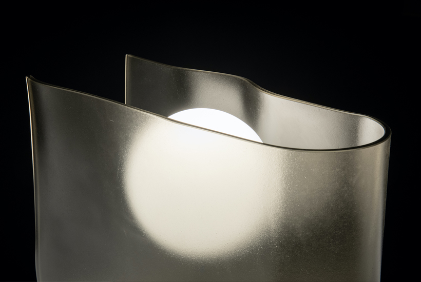 Dusk designed by nendo captures the gentle glow of twilight. This collection integrates a folded sheet of bronzed glass with a spherical light source. Paying homage to the profound symbolism of the sun's descent in Japanese cultural heritage, the collection breathes life into this timeless motif through the ethereal presence of the blown glass "sun," cradled within the embrace of the fused glass "evening sky." As the lamps are arranged in a harmonious procession, their varying heights and positions evoke the gradual manifestation of dusk, while their sculptural profile is emphasised by the lights' muted glow.