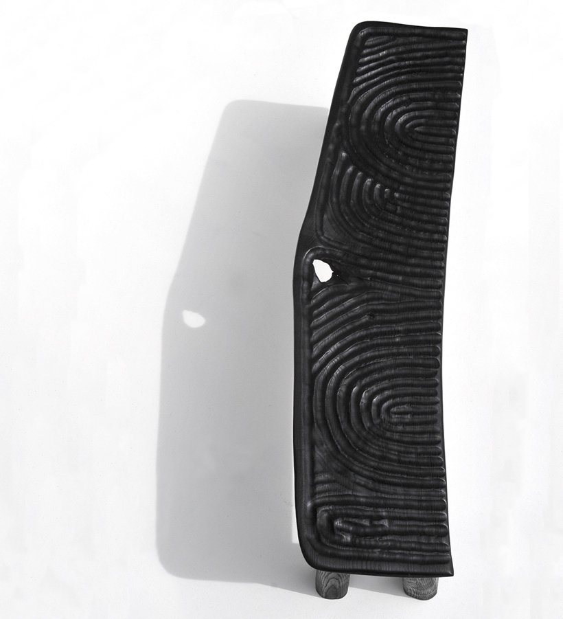Through material, texture and form, the piece beautifully highlights the bridge between traditional craft and modern technologies. The works tactile surface encourages a sense of play, that aims to question our handling and understanding of the materials that surround us.