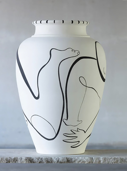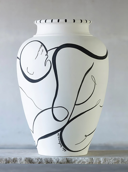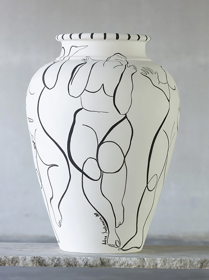 This vase collection includes a is a series of figures that are captured revealing themselves as merely a decorative object. Unsatisfied, afraid and uncomfortable they each have their own narrative. The simplicity of form and the natural rhythm of the line is characteristic for the artists’ style.