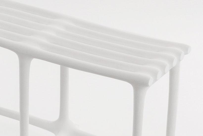 Hot Wire Extensions pieces is an innovative material process using the waste nylon powder of SLS 3D printing. The Hot wire bench explores a new and exciting way of making that transforms simple wire structures into solid bodies. The unimaginable freedom in shapes, and the properties of the material mixture make this process easily distinguishable from traditional manufacturing processes.
