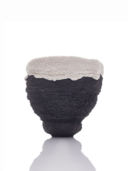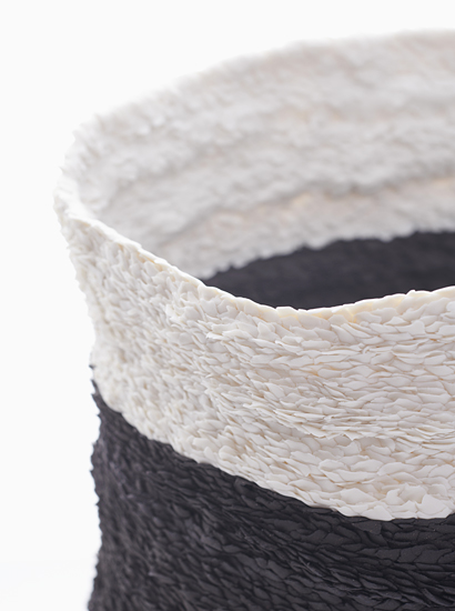 The Imbrication collection is made by layering tiny pieces of clay, one fingertip sliver upon another creating an intricate overlapping texture. The process is philosophically inspired by the making practices of other species, such as beavers who build dams without a predetermined shape. Creating the piece intuitively allows more freedom in the making process which gives an organic character to the unique pieces.