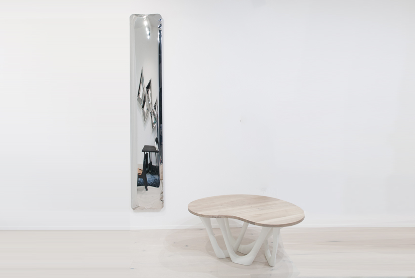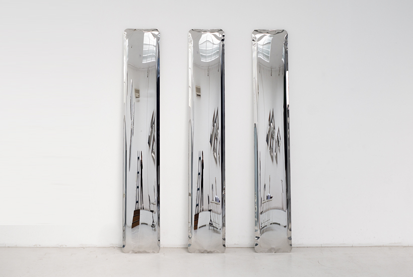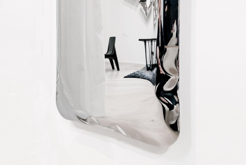 This Collection of mirrors combines aspects of art, design and technology to create a unique story. Using FiDU technology, polished stainless steel is inflated and converted from a flat object into a three-dimensional mirror. The mirrors feature surfaces with curves that form during the manufacturing, leading to creases and bends that differs in each piece. These sculptural wall pieces reflect their surroundings in their own special way.