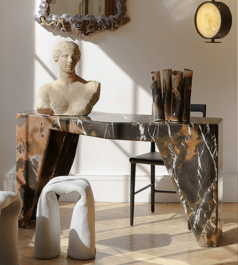 The opulent and elegant JAZ Console perfectly showcases the best of traditional French craftmanship. The unique form enhances the purity of the marble, creating a striking statement piece that will demand attention in any refined interior. Unique piece exclusive to Mint.