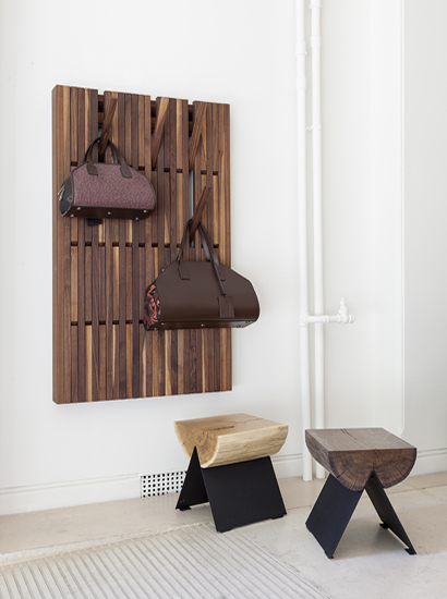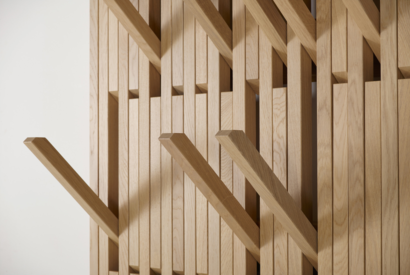 A slim and ultra-compact clothes hanger with foldable hooks allowing for multiple hanging, 48 hangers on the large version and 20 on the small version. When not in use the structure appears as a minimalist wall panel.