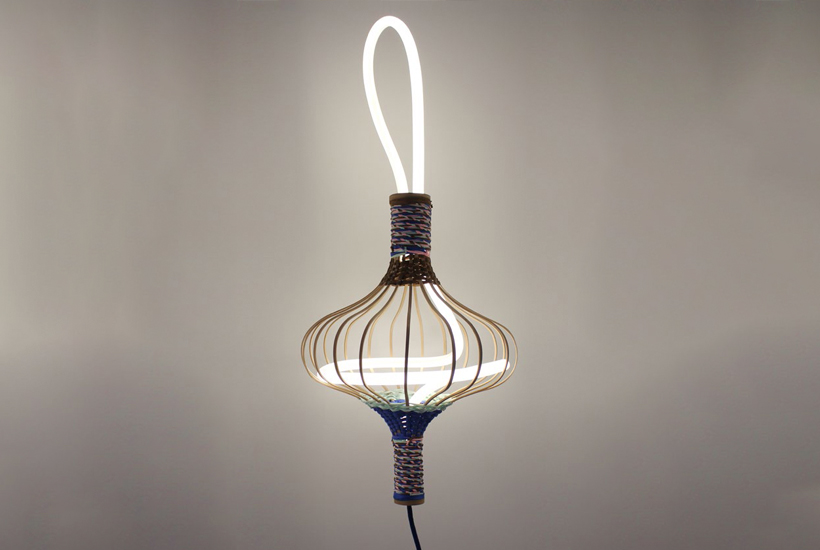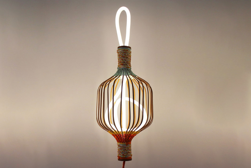 The freedom in hand braiding allows materials to be transformed into objects through measured choices in colour, texture and composition. Braiding can offer a means to create lightness, transparency and movement with interior and exterior volumes. By re-imagining the Japanese lantern, braiding is used as a method to sculpt light through the capturing of light in wooden cages bound with colourful paper chains.