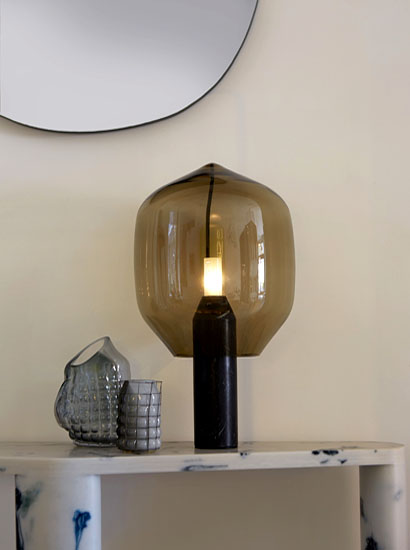 A sculptural, voluptuous and enchanting object, the Lighthouse combines Venetian hand-blown glass with industrially engineered aluminium and pure marble to create an enduring contemporary classic.
