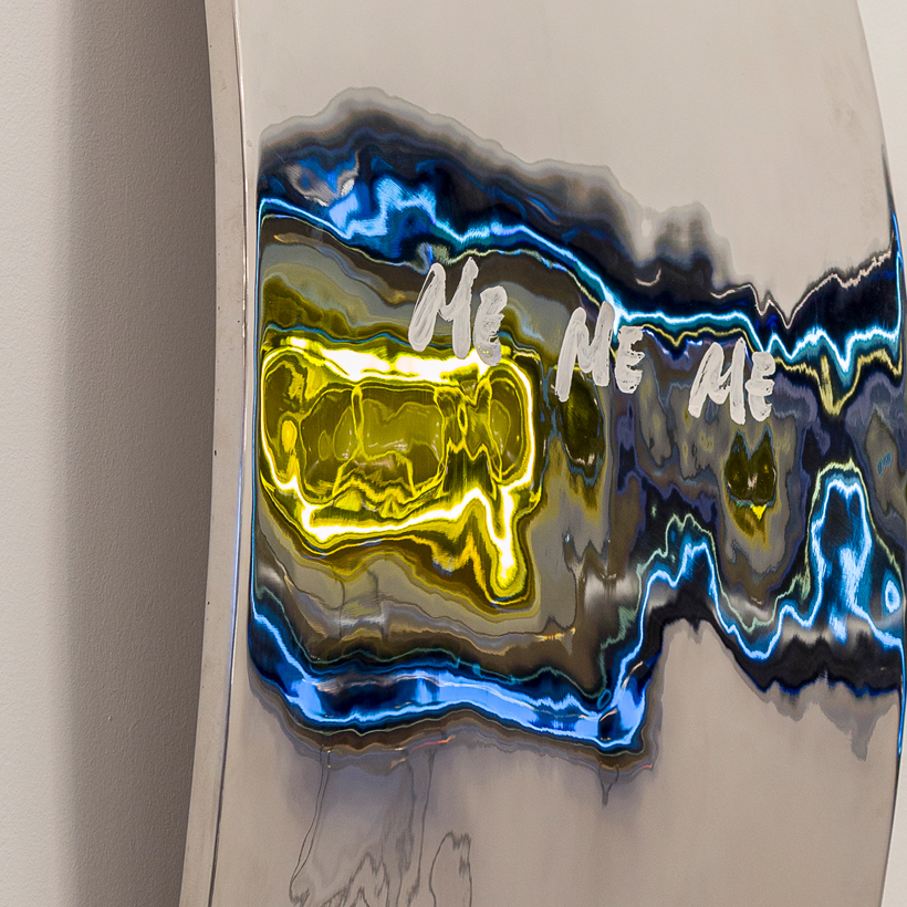 The concept for this thought-provoking piece is built around the question we often find ourselves asking - ‘Who am I?’ Yiwen believes that our identities are layered, the outside layer representing basic identity, which is influenced by our surroundings and society, the second comes from how others perceive us, and the innermost layer represents how we define ourselves. Through the ME ME ME Mirror, Yiwen invites the audience to reflect upon this idea and consider their own identity. Always effected by what others think of us, we may hide elements of our true self, to fit societal norms.