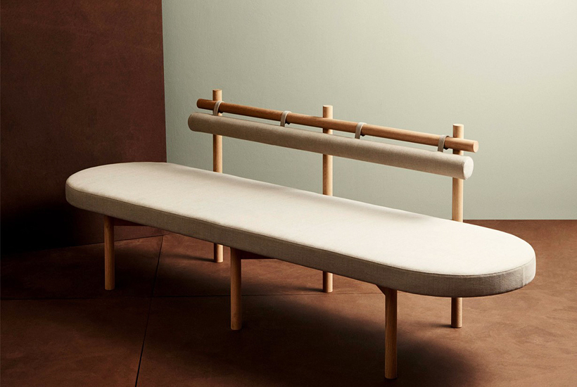 This furniture collection incorporates a modular system building a bridge between rectangular and curved forms inspired by both Nordic and Asian traditions. The chair is crafted from solid oak and can be upholstered in both leather and textiles.