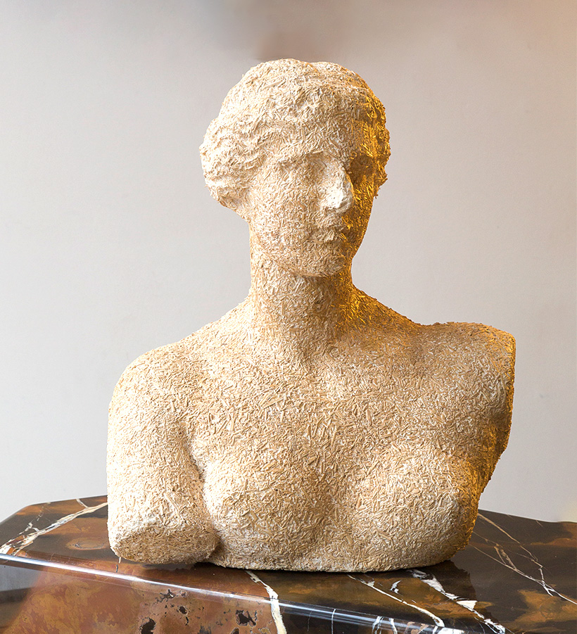 The Mythcellium bust is sculpted from the material Mycelium. Mycelium is a root-like structure of a fungi that has been recently discovered as an organic packaging material. In a world where plastic and polluting materials are the protagonists, mycelium is starting to be an excellent substitute. The bust represents the faces of young Greek gods and illustrates a beautiful embodiment of traditional craft with innovative materials.