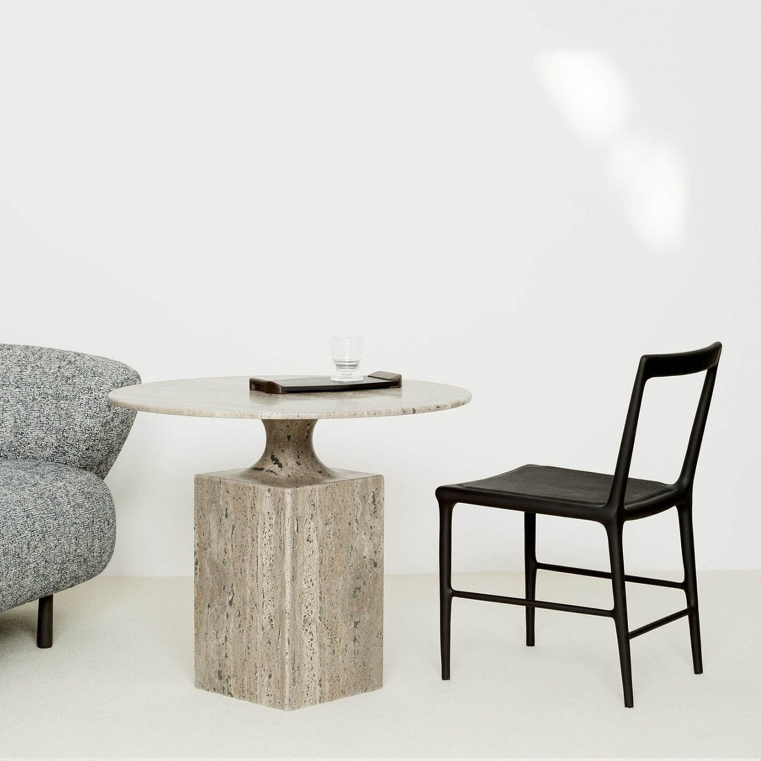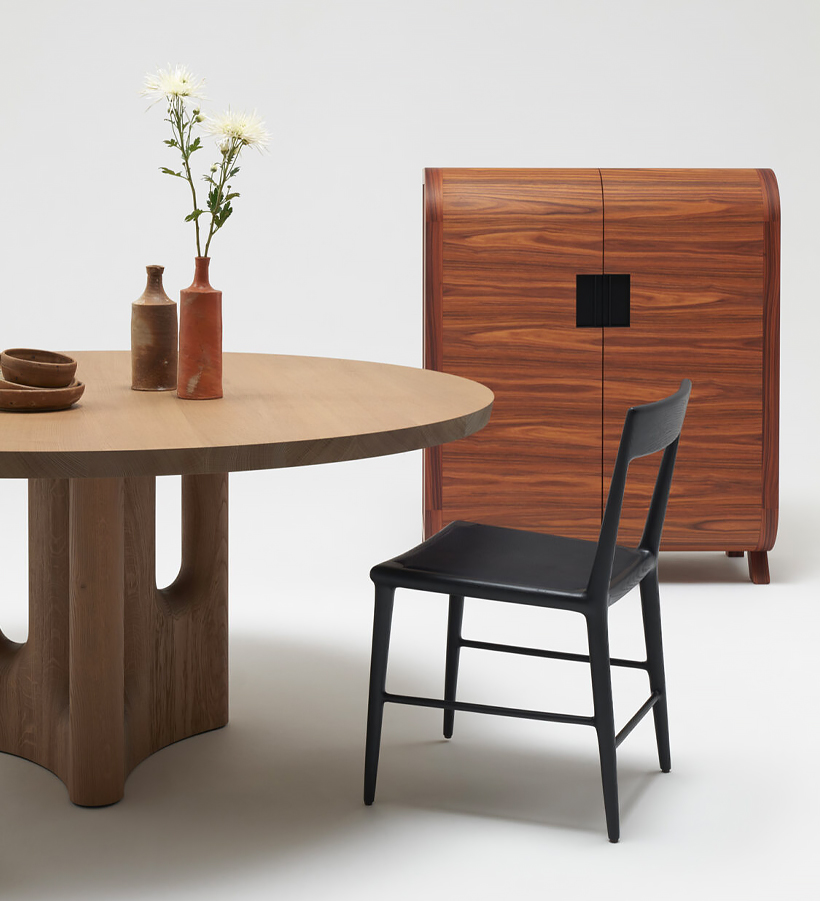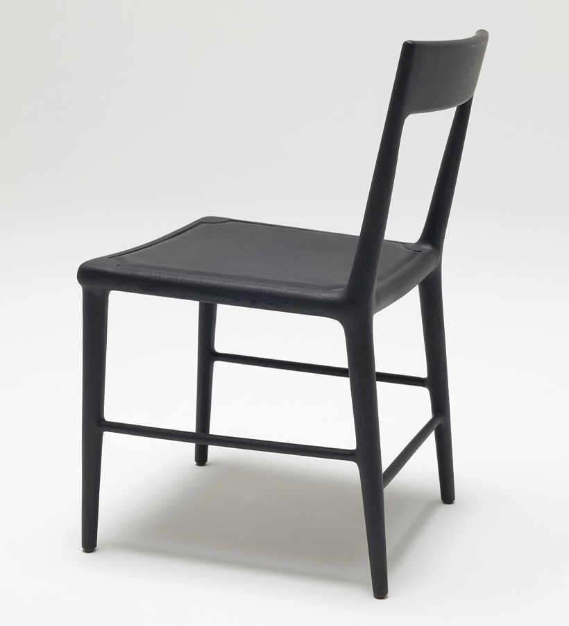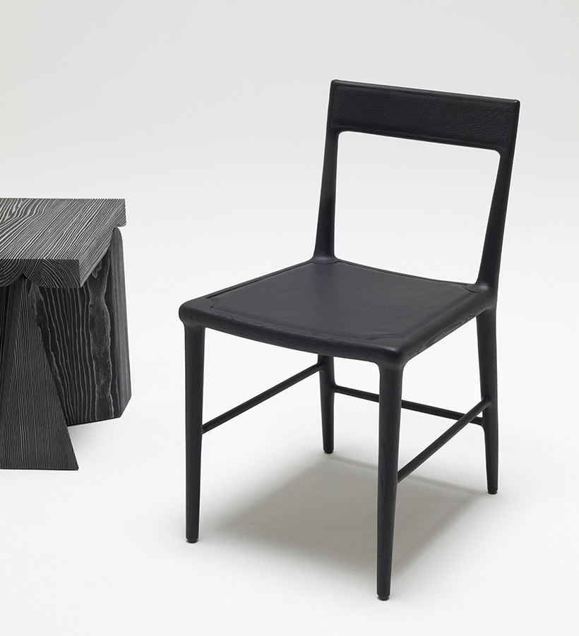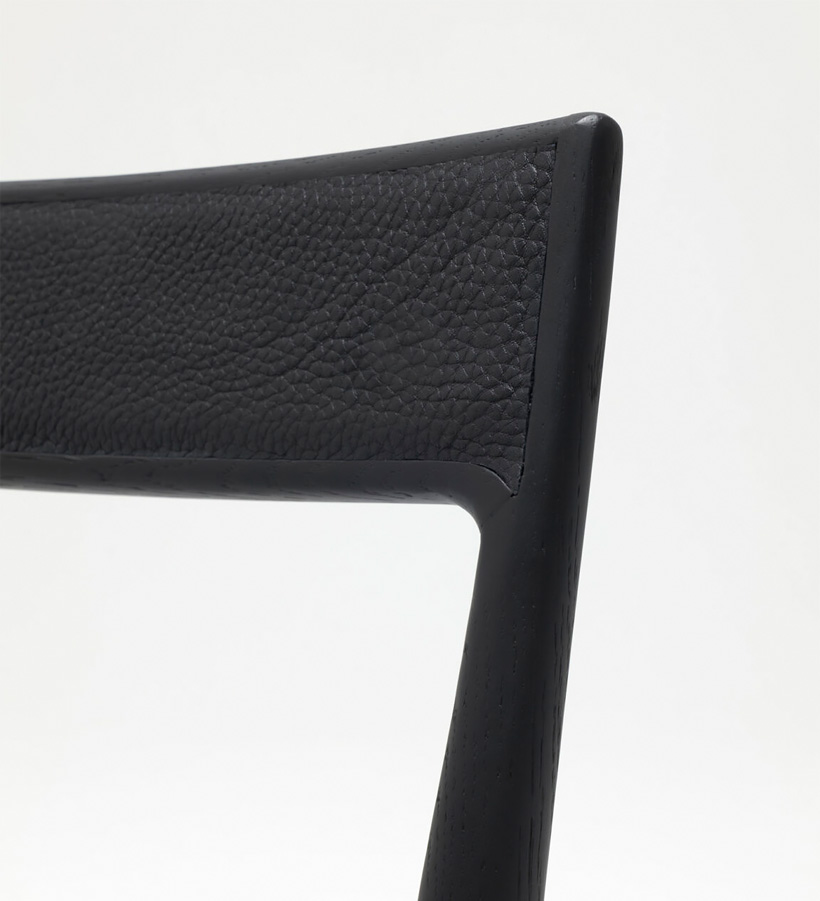 The refined and elegant OUD Chair is crafted with a naturalist aesthetic. The black oak structure and beautifully textured leather seat creates a dining chair with a delicate warmth. The piece is a testament to the designers love for materials and a perfect embodiment of traditional French craftmanship.