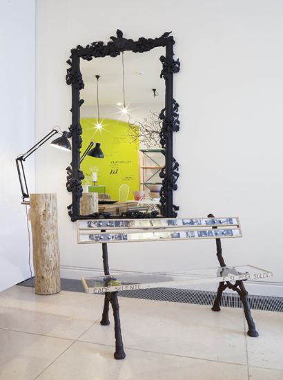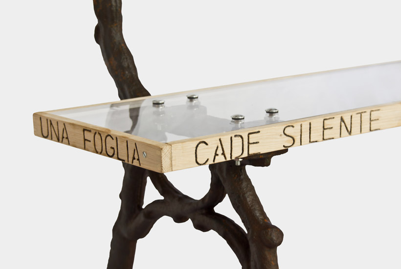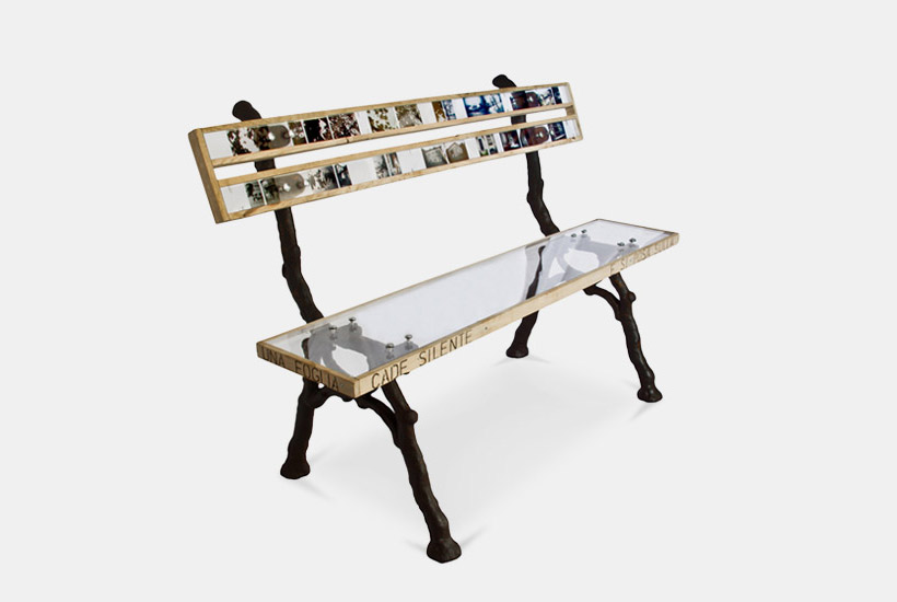 Unique Edition. This two-seater bench depicts scenes of a beautiful sixteenth century Oak tree and a historical villa in a public park in Bologna. An Italian phrase is thoughtfully engraved into the bench emphasising the idea of lightness, transparency and shadows. The frame is created from reclaimed ninth century cast iron perfectly tying all the elements together.
