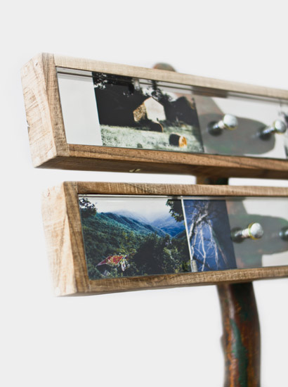 Reclaimed cast iron frame, plexiglass, chestnut wood, Lambda prints