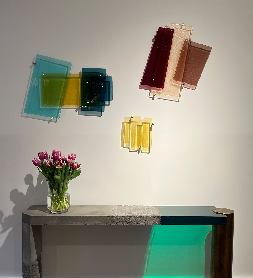 In Glass Ensemble, the remarkable material characteristics speak for themselves and are enhanced by the playful designs. These glass assemblages make for striking compositions and will create an eye-catching play of light on any wall surface.