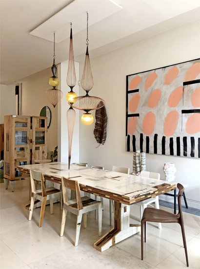 The Scrapwood Table is meticulously crafted using traditional wood-working techniques. It brings the designer’s quintessential vocabulary of recycled wood collage to a table design of exceptional grace. Each table is completed with a high gloss finish for a full expression of the wood’s texture.