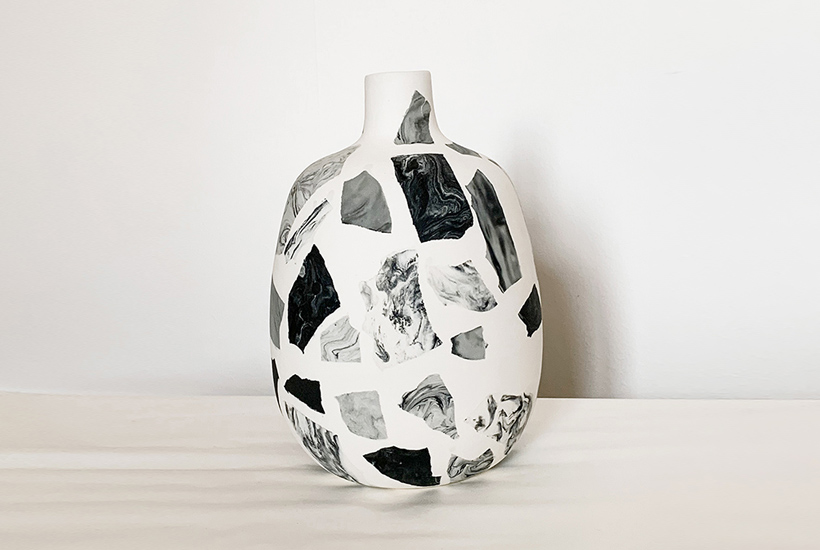 This collection of vases is made using traditional techniques similar to the fabrication of Venetian terrazzo floors. Whilst terrazzo surfaces consist of durable materials such as marble, granite, concrete or metal aggregates mixed with cement or epoxy, the terrazzo vases explore the terrazzo production techniques with porcelain as an exciting new material. The coloured chips are pre-made using a marbling technique which are later integrated into the slip casting process to blend with the main body. Each vase reveals its unique colours after being sanded down.