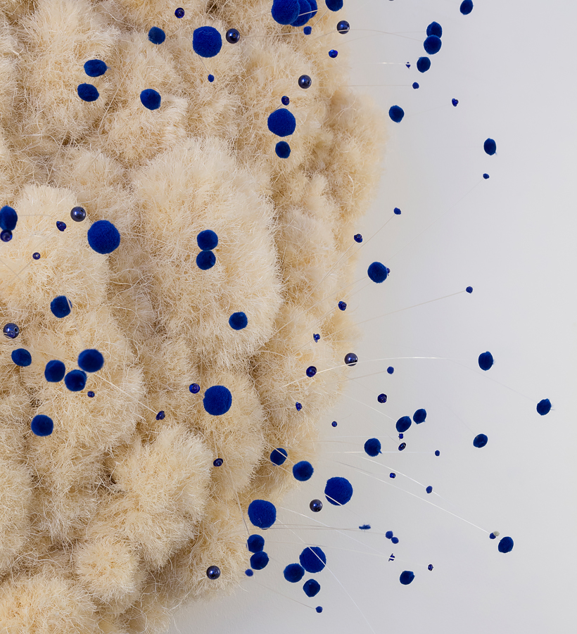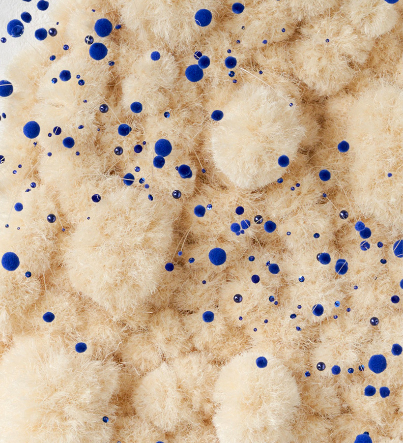 Foam backboard, sisal rope and glass fibers with pompons