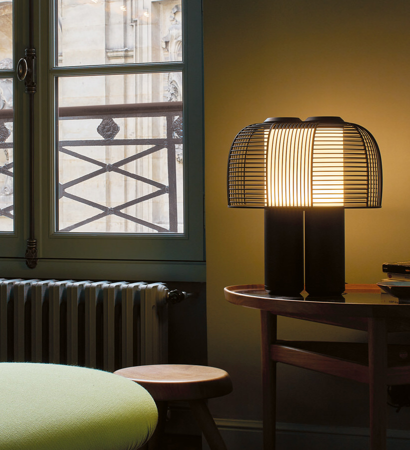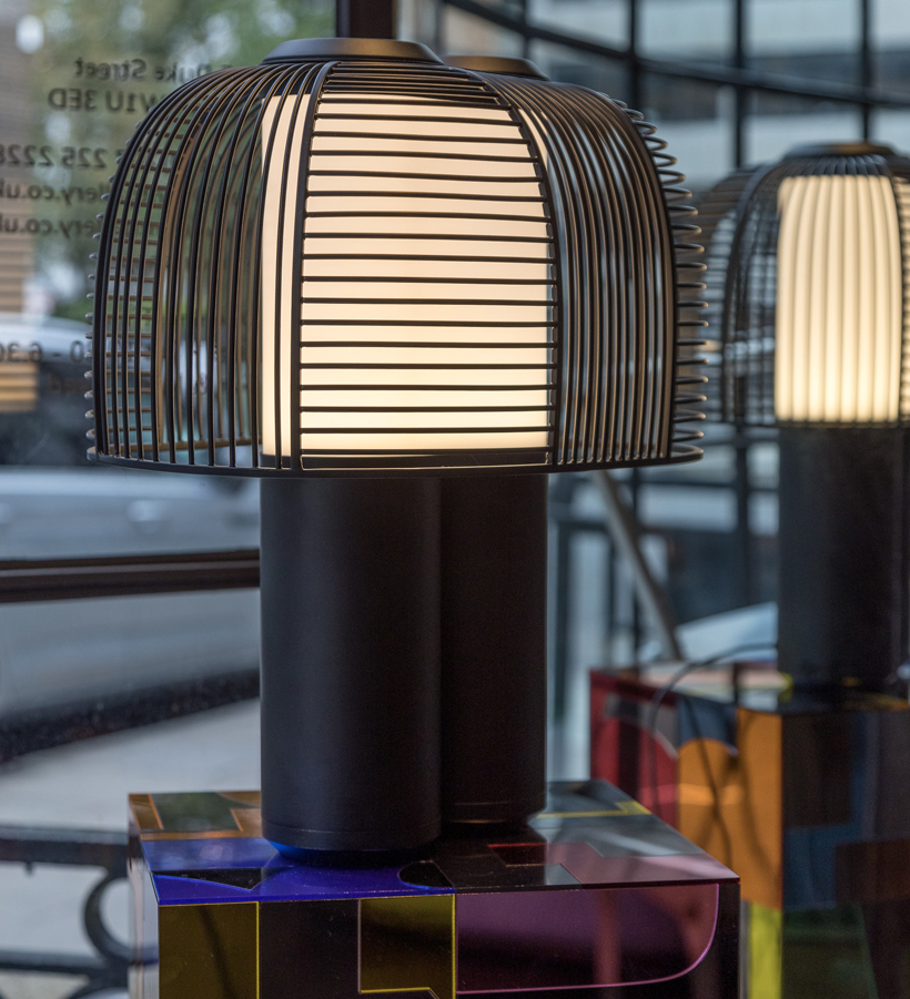The Yasuke lamp is a futuristic lighting fixture that takes you on a journey from soft, warm tones to the brilliance of a southern sun. Combining elements of futurist architecture, 21st-century crinoline design, and spaceship aesthetics, this lamp allows users to customize their lighting environment using two dimmers. One dimmer controls the bulb's color temperature, while the other adjusts its brightness, giving you complete control over your lighting experience.