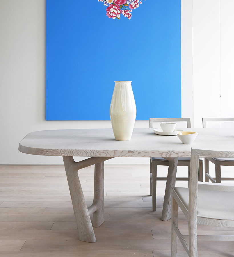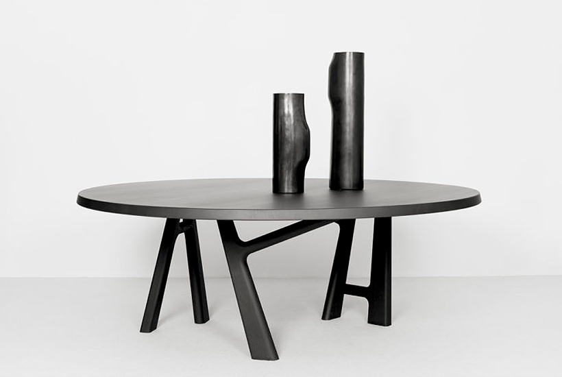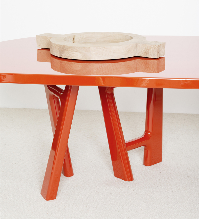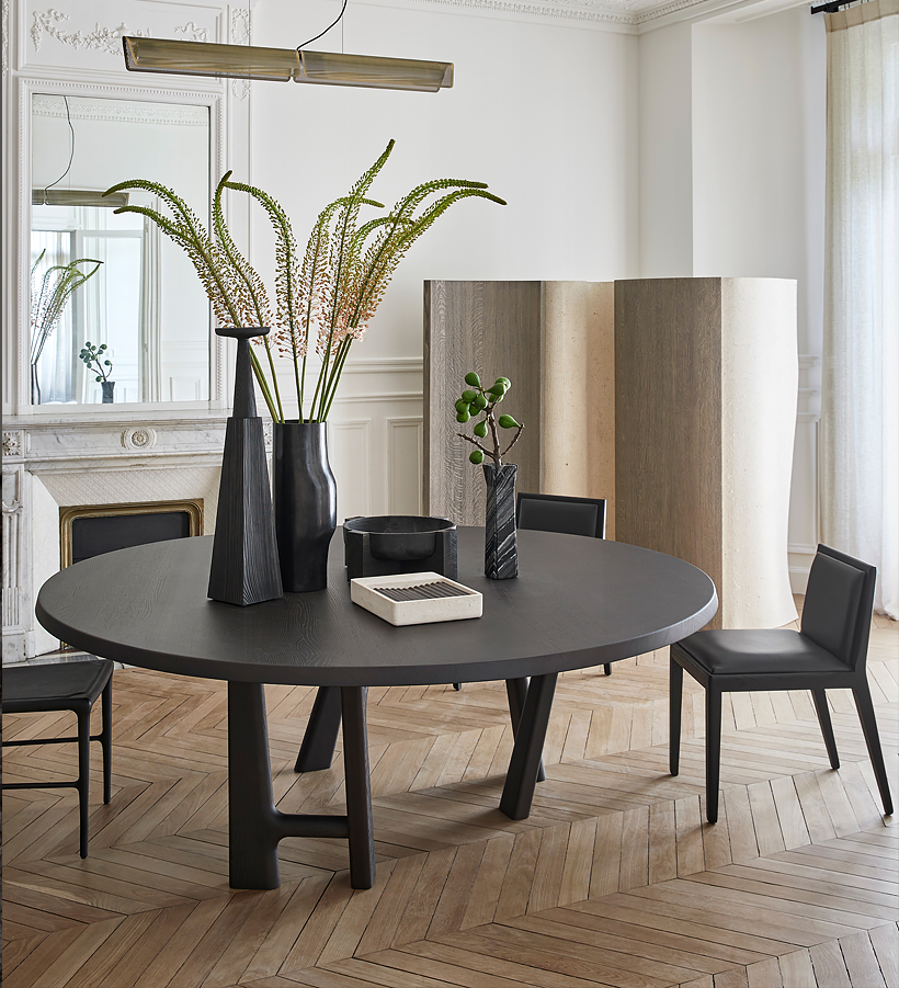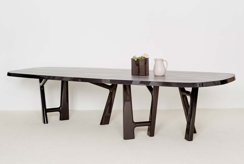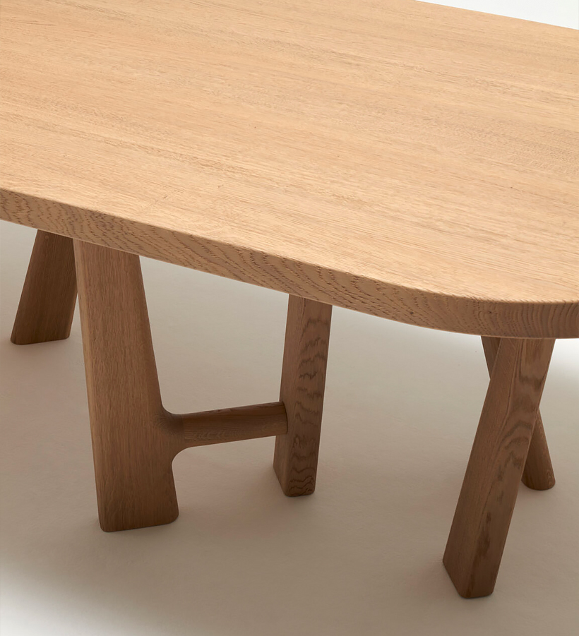 This organic tabletop is supported by a playful leg design, creating an exceptionally inviting and functional table that adds a subtle opulence to any interior space. Designed by Jean-Pierre Tortil.
